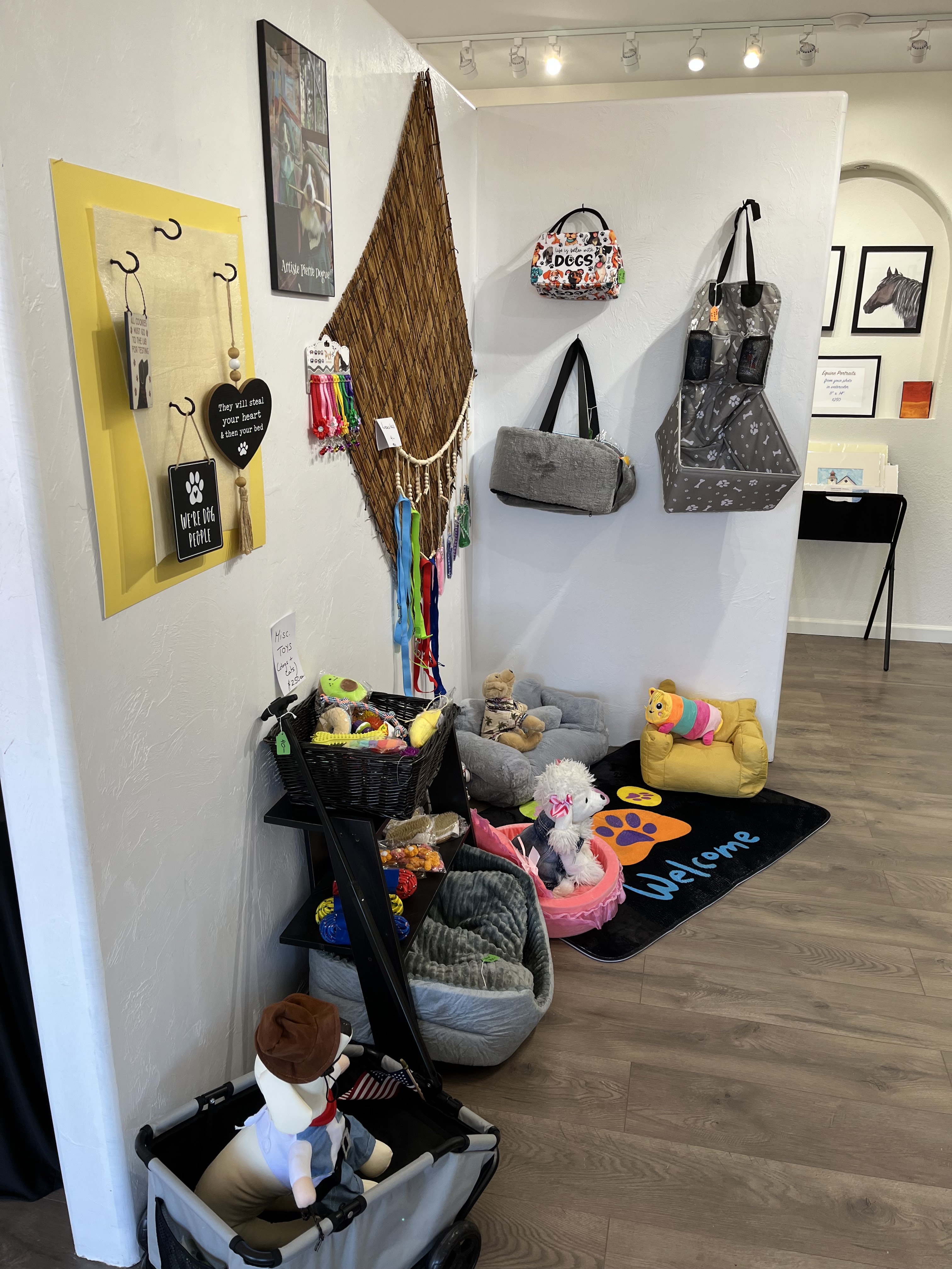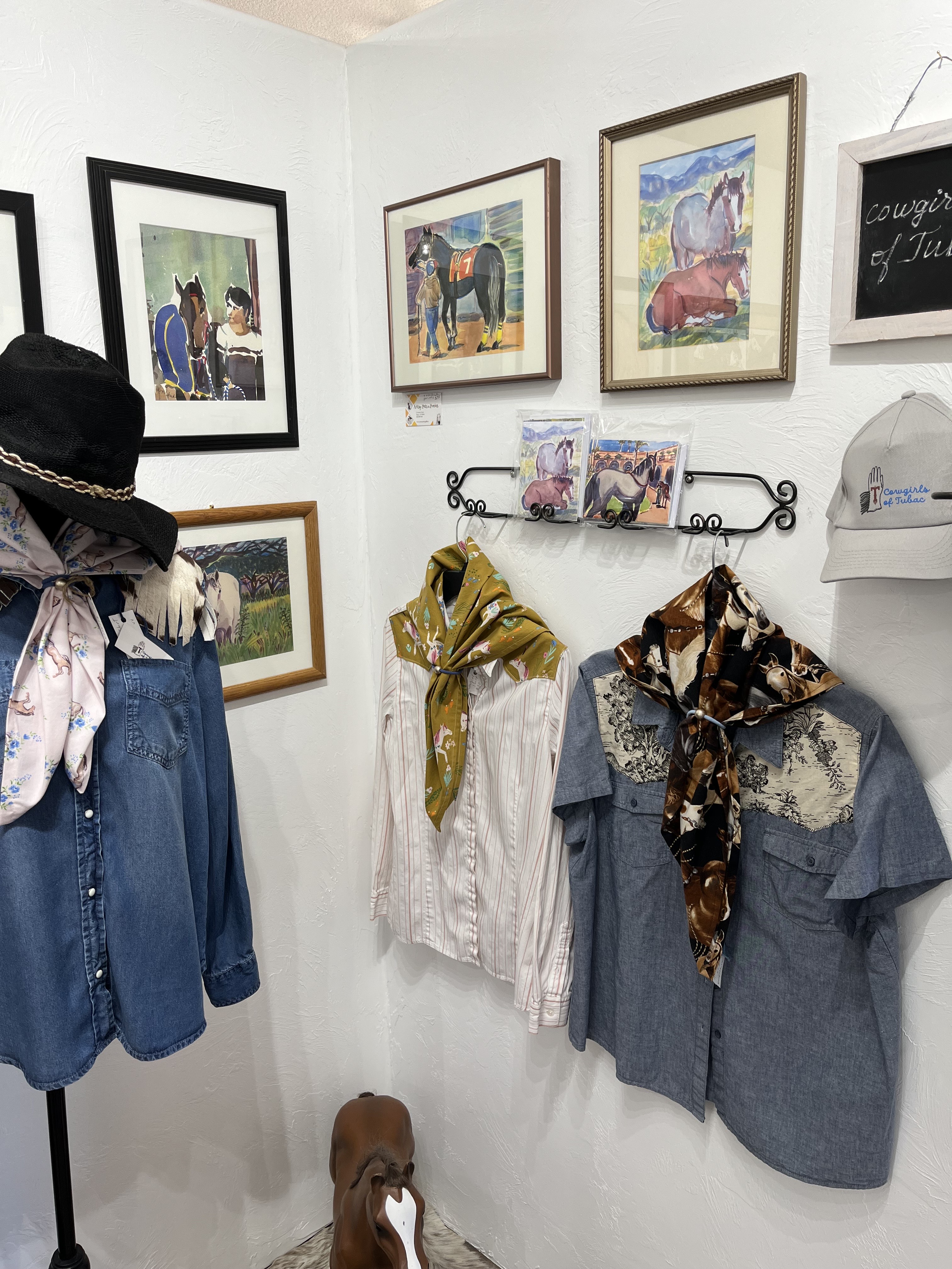 Artsy Pets & Ponies is the result of two local marketers and pet-lovers (Veronica and Virginia) realizing that, while there was a LOT of art in Tubac — voted the premier Small Arts Community in the Country (USA Today), — there were no galleries or gift shops focused on the art and lifestyles of pets and horses. This is ranch country, after all…